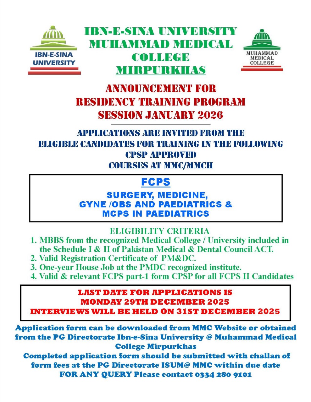 FCPS in General Surgery, Medicine, Gynae & Obs and Paediatrics